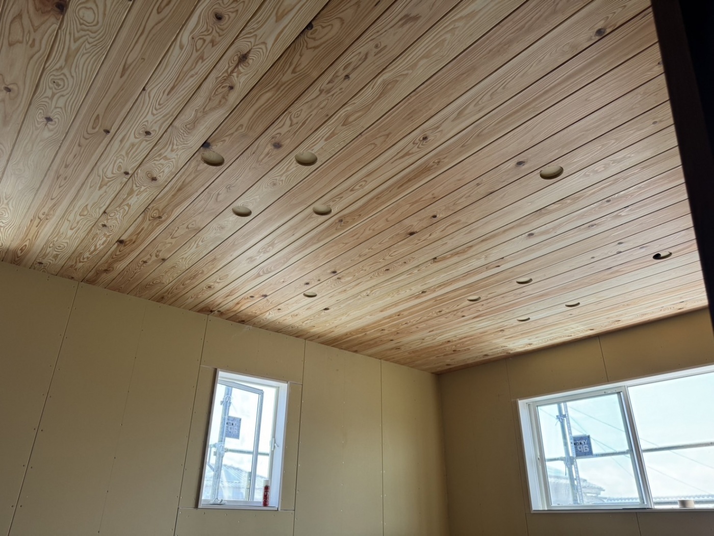 ここは、LDKの天井に杉板を貼りました。