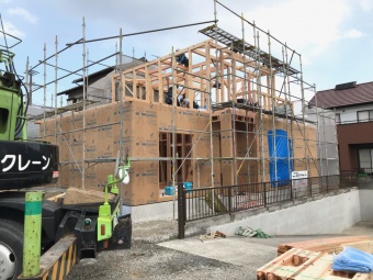 大工さん7~10人ほどで1階部分から2階屋根まで、