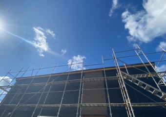 足場がなかったらいい感じに映えそうですがまだまだ外回りの作業が残っていますのでもう少し先になりそうですね。