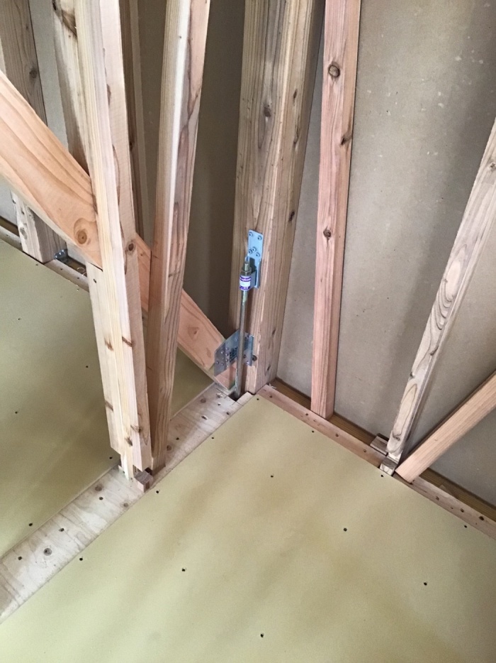 最後は、「ホールダウン」。こちらは一番大事と言ってもいいくらい大事!地震時などに柱が土台から抜けるのを防いでくれます。