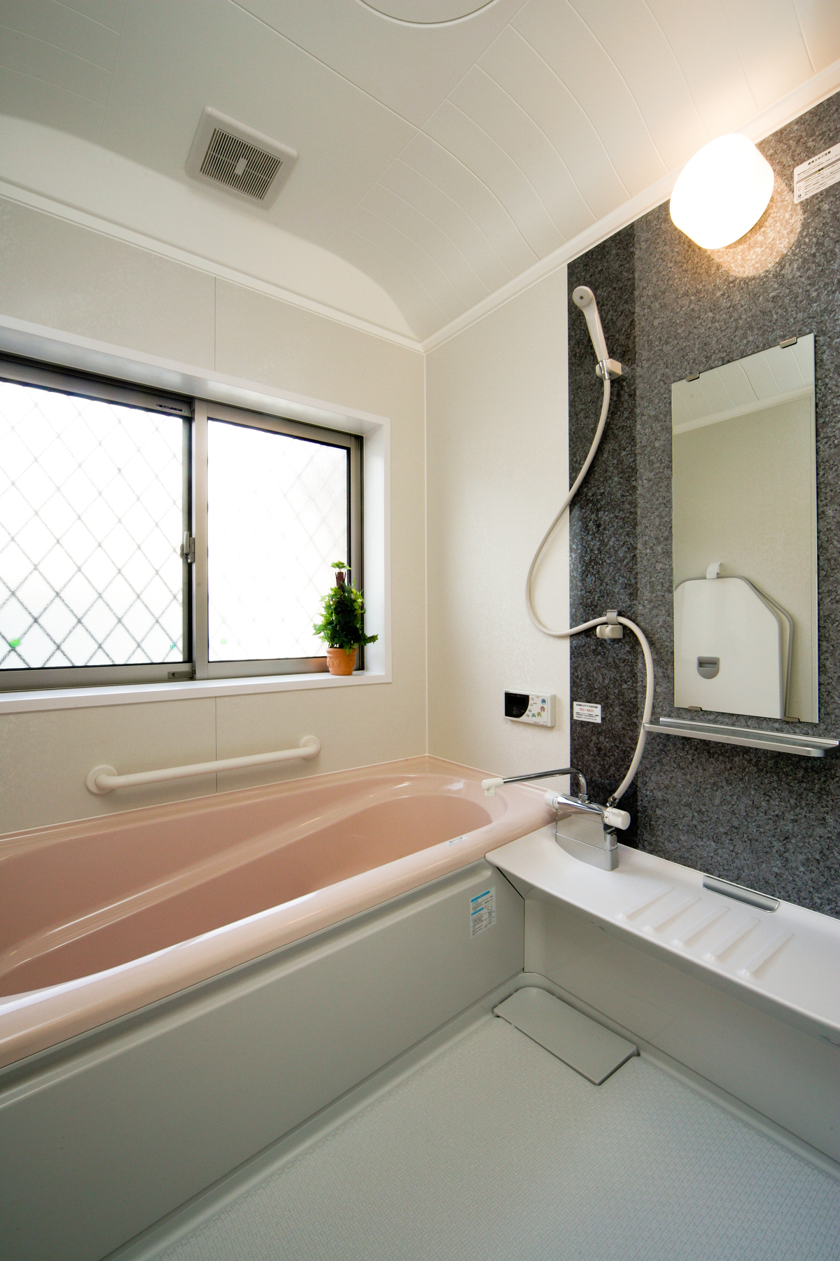 TOTO製のシステムバスを設置した浴室では、くつろぎのバスタイムを楽しめます。