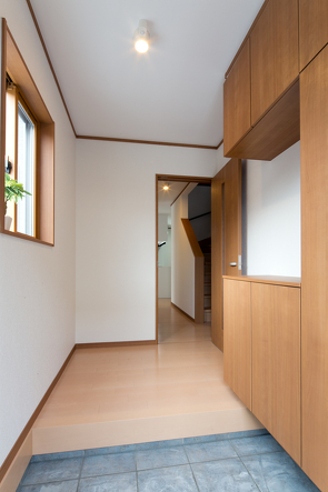 ゆとりを持たせた玄関ホールには大型収納を設置しました。