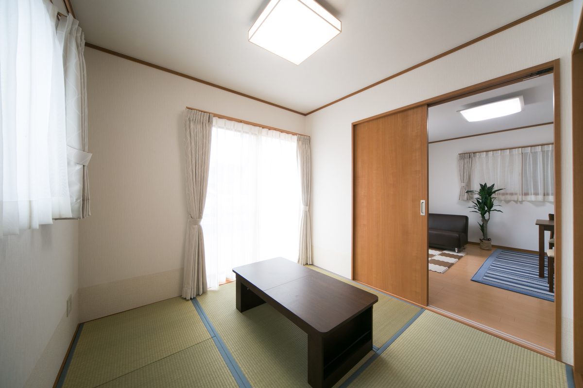 LDKに隣接させて和室を設けています。リビングの続き間としても、個室としても使えます。