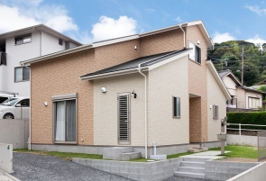 南欧風に仕上げたあたたかみのある外観。元気のいい男の子二人が遊ぶお庭も出来ました。