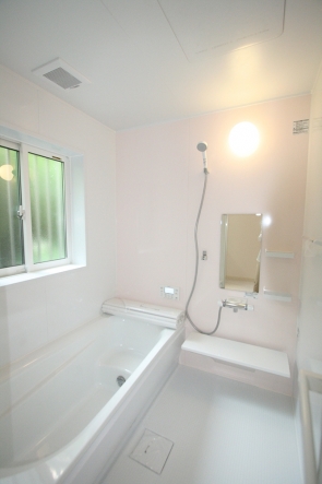 足を伸ばしてもゆっくり入れる浴槽です。浴槽内に段差があるタイプで、お湯のなかで伸ばした足を置いたり、腰かけて半身浴をしたりもできます。