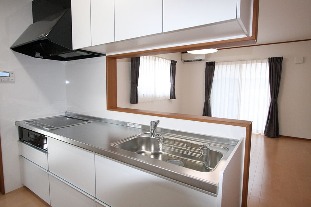 何かと物が増えるキッチンはシンプルながらも収納力のあるものを選びました。IHクッキングヒーターを採用し、安全面も考慮しました。