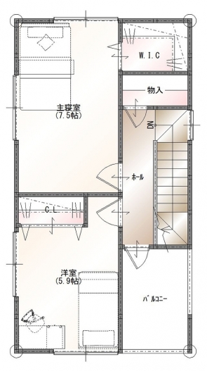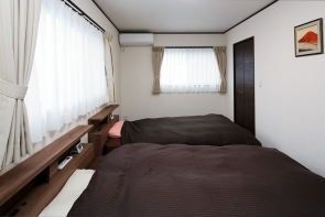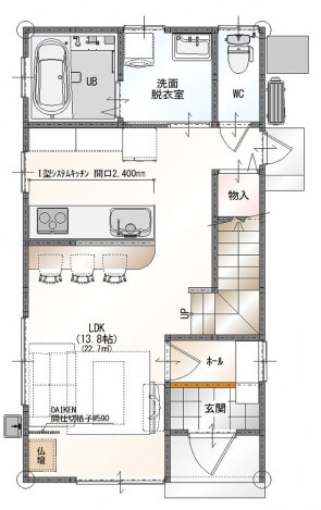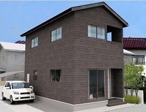 コンパクトな2階建て2LDKのお家です。写真向かって右側が玄関になっています。