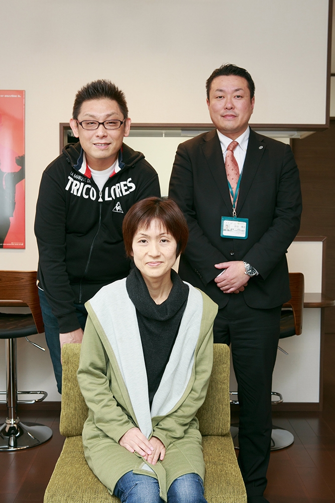 N様ご夫婦と担当者です。お子様も独立され、ご夫婦二人の生活にちょうどいいサイズのお家に、大変ご満足いただきました。