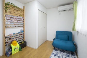 小学生のお子様の部屋です。大切なミニカーを並べ、ご満悦です。