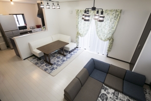 こだわりの照明器具はLDK空間のポイントになりました。
