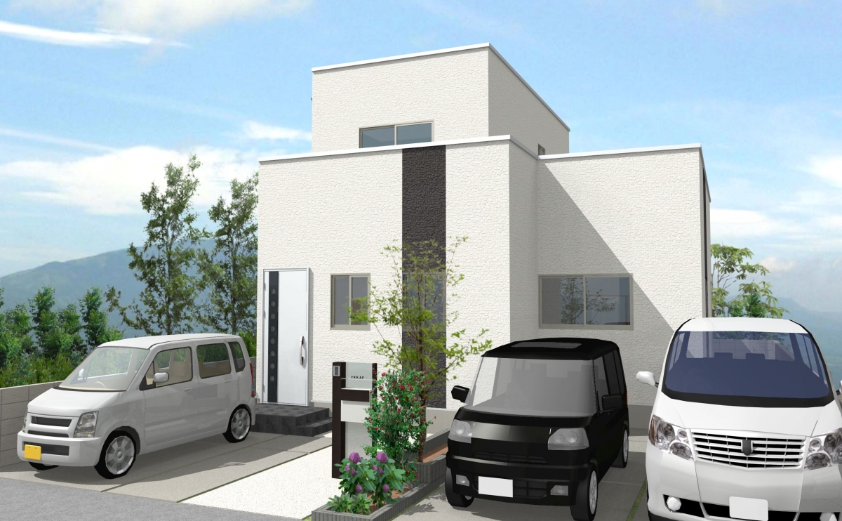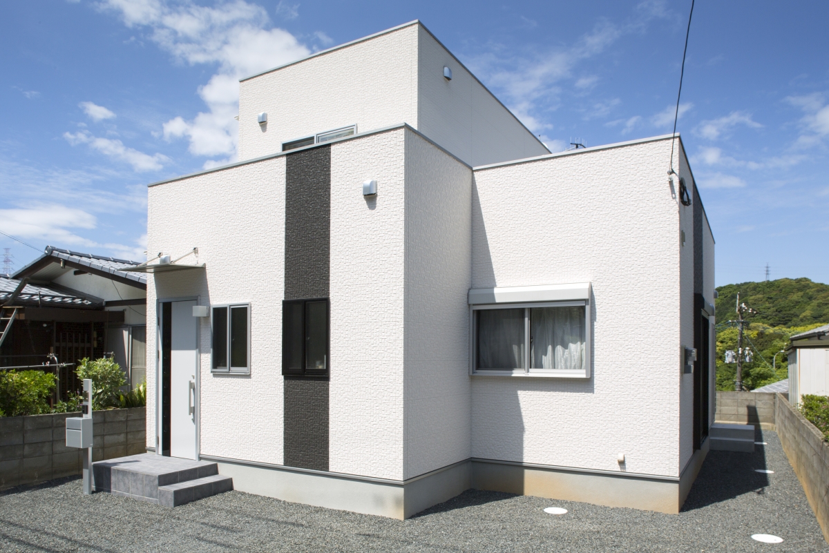 キューブ型のシンプルな外観はお施主様の絶対のご希望でした。