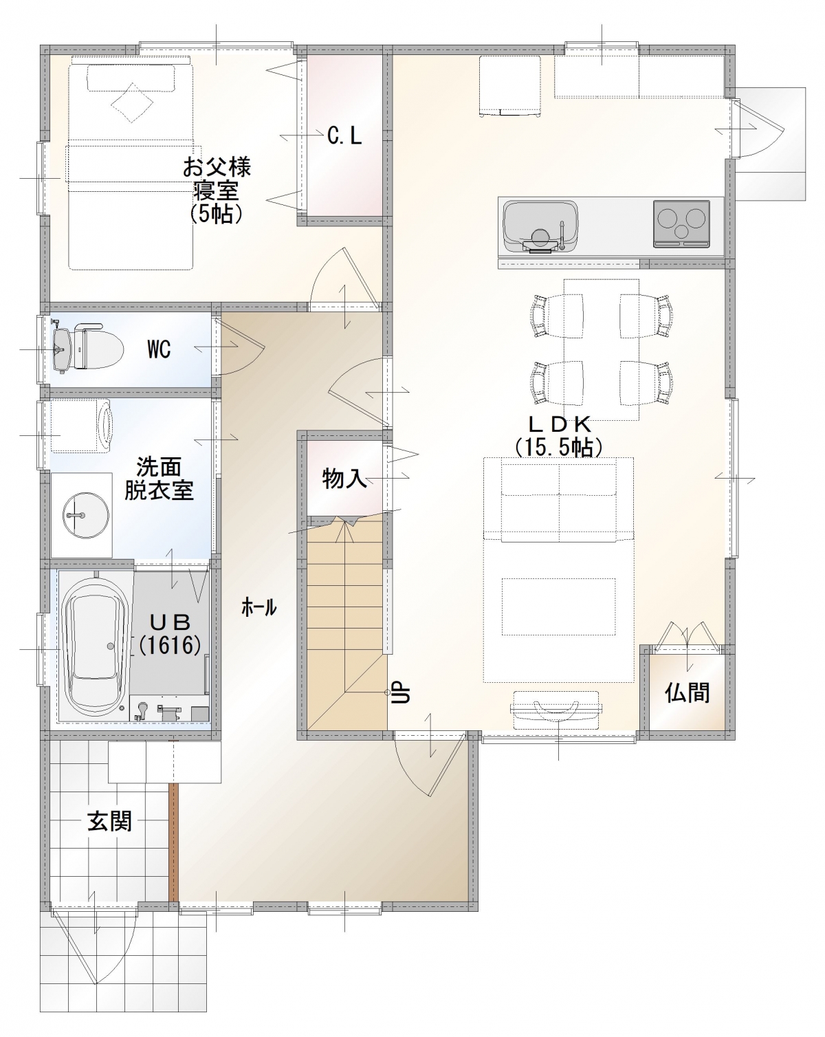 リビング階段なので、いつも家族の気配を感じられる造りになっています。