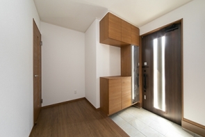 明り取りのある玄関ドアで明るい玄関ホールです。