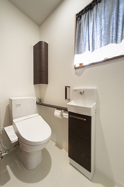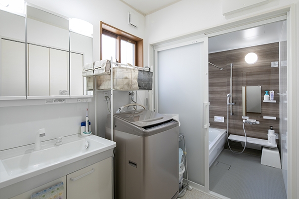 洗面化粧台は収納量が多いタイプを選び、小物が増えがちな洗面所も片付きやすいようにしました。