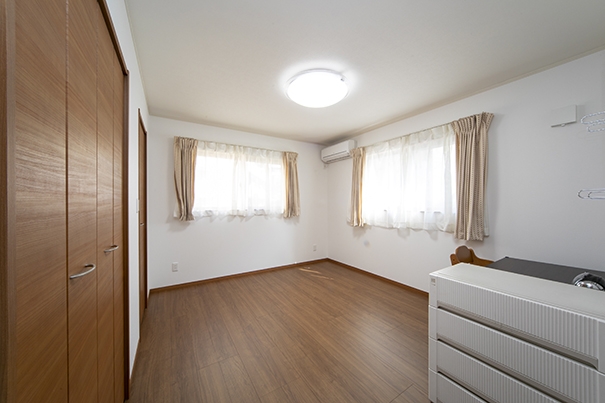 7帖の主寝室です。ウォークインクローゼットと薄型の物入れも作り、部屋が片付きます。