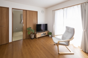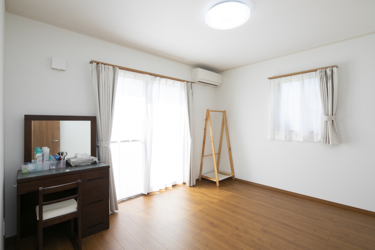 バルコニーに面した洋室です。大きな窓で、とても明るい空間になりました。