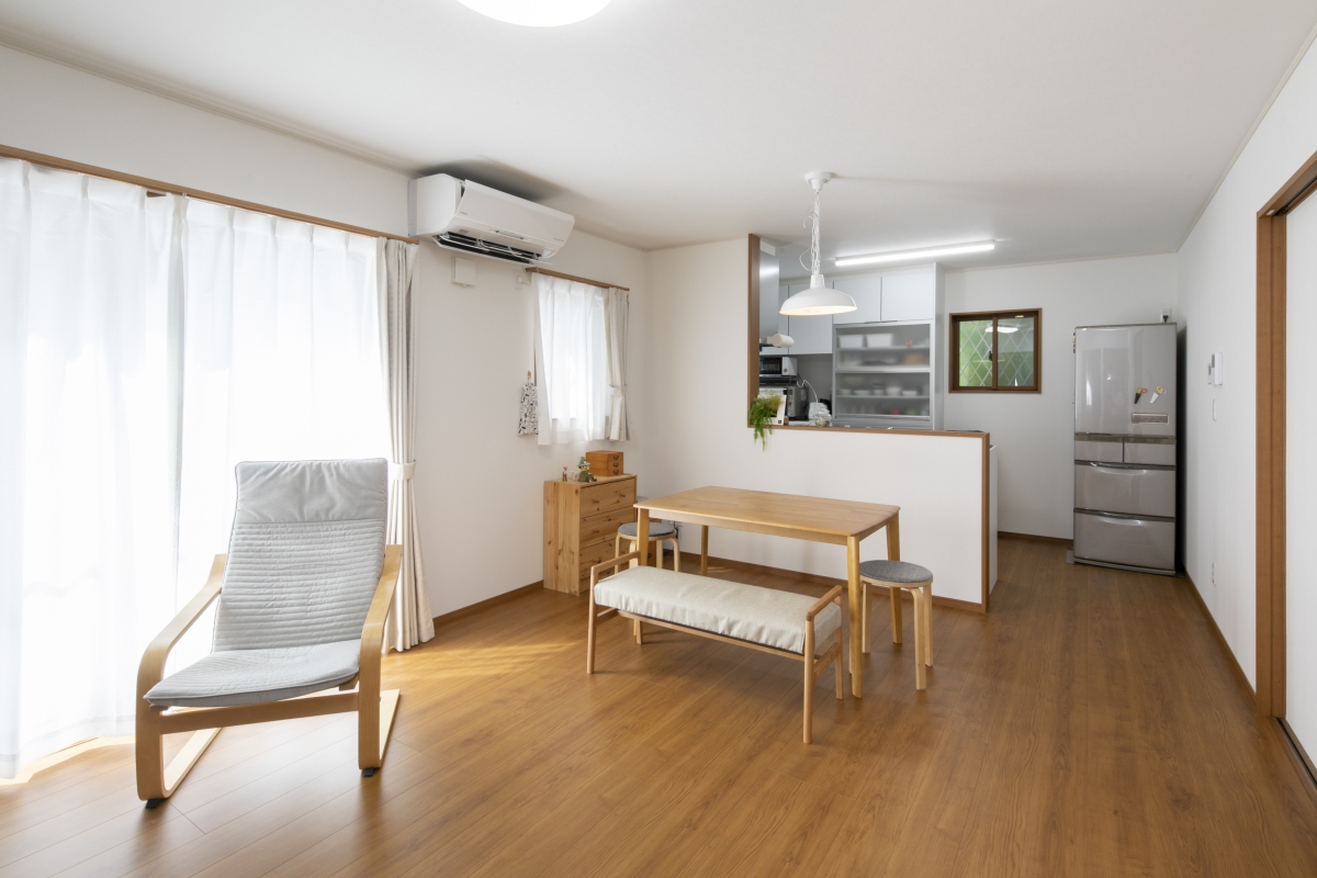 キッチンは吊戸なしにしました。キッチンからの一体感が生まれ、LDKがより広く感じられます。