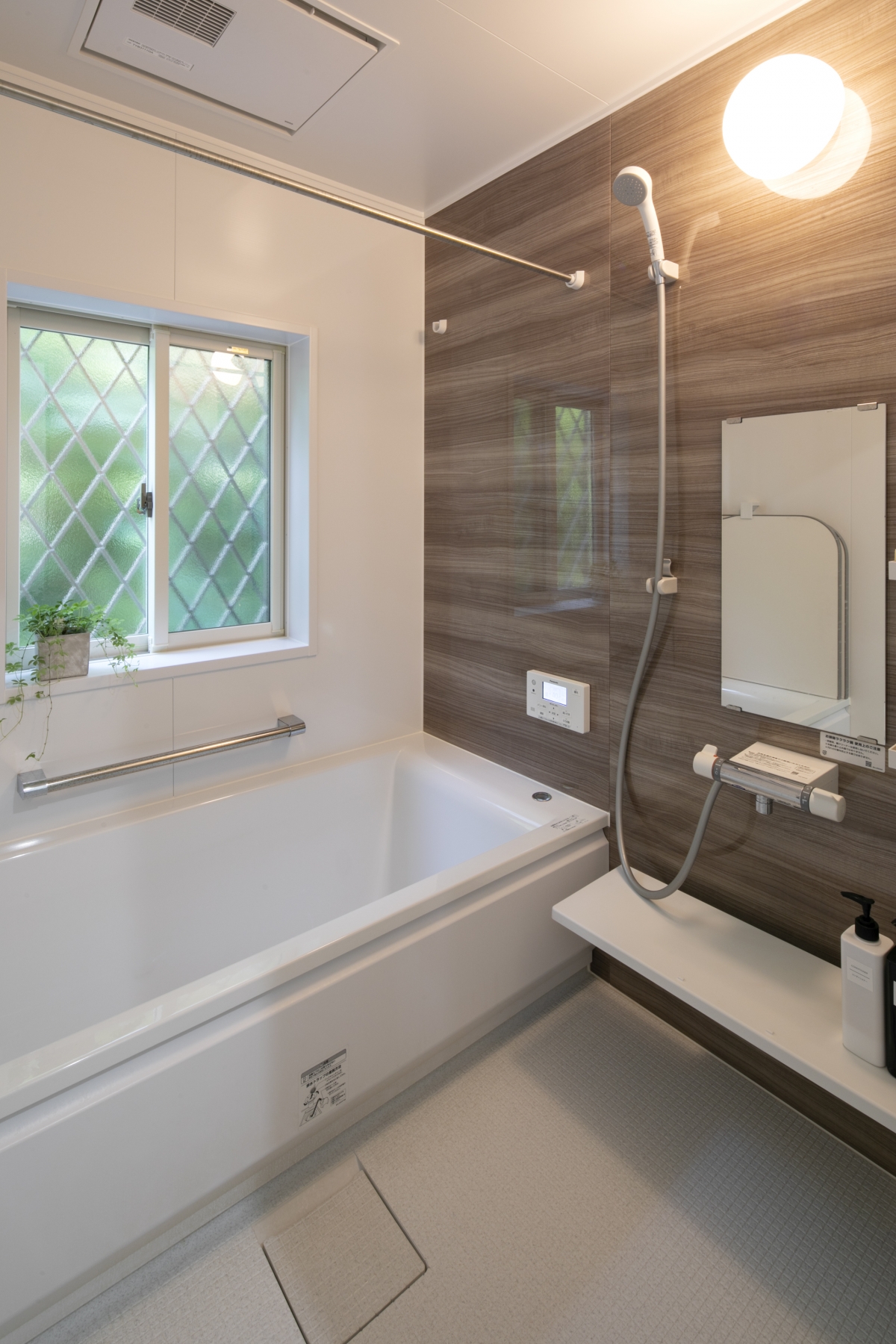 浴室暖房乾燥機を設置しました。ゆっくりとくつろげる広さの浴室です。