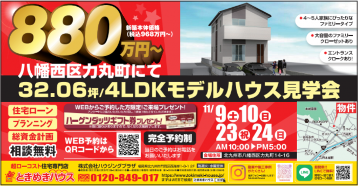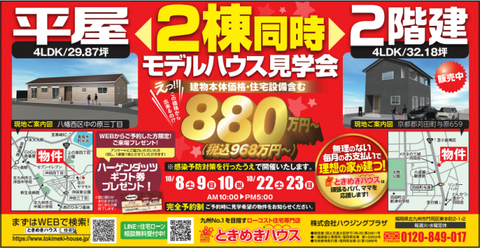 【完全予約制】10月11日(土)~12日(日)、25日(土)~26日(日)にモデルハウス見学会を開催!