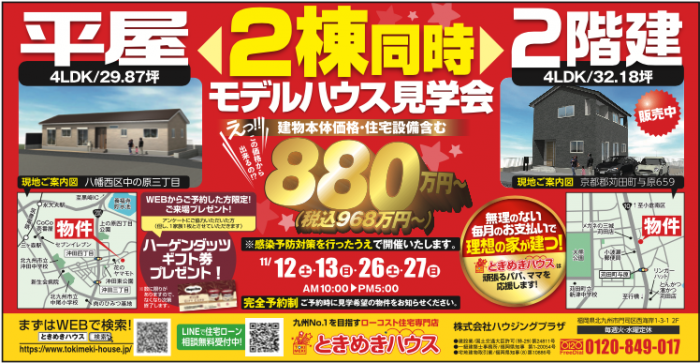 【完全予約制】11月9日(土)~10日(日)、23日(土)~24日(日)にモデルハウス見学会を開催!