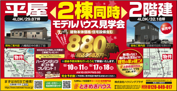【完全予約制】12月13日(土)~14日(日)、20日(土)~21日(日)にモデルハウス見学会を開催!