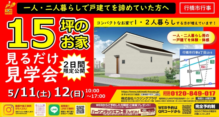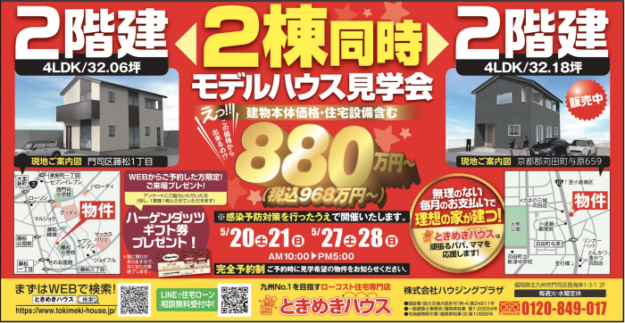 【完全予約制】5月17日(土)~18日(日)、24日(土)~25日(日)にモデルハウス見学会を開催!