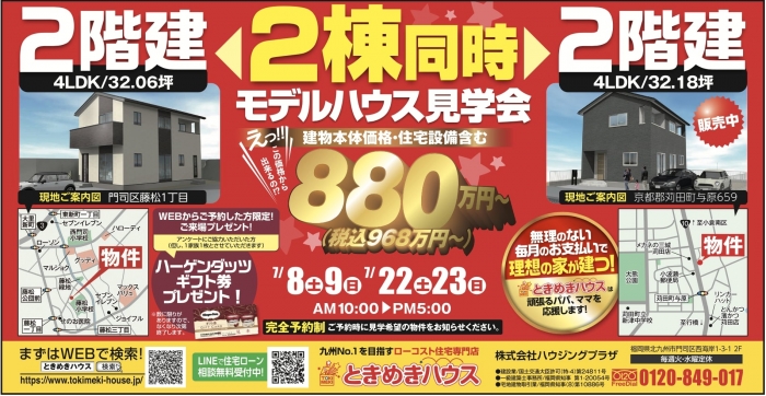 【完全予約制】7月12日(土) ~7月13日(日)、26日(土)~27日(日)にモデルハウス見学会を開催!
