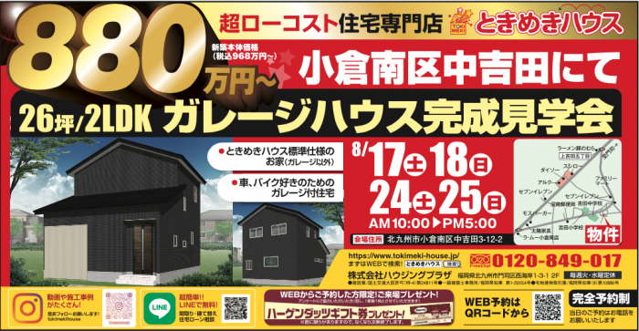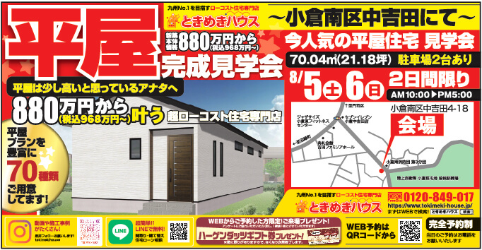 【完全予約制】8月9日(土) ~8月10日(日)、23日(土)~24日(日)にモデルハウス見学会を開催!