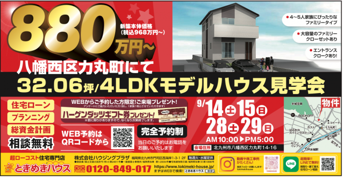 【完全予約制】9月14日(土)~15日(日)、28日(土)~29日(日)にモデルハウス見学会を開催!