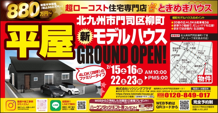 【新モデルハウスオープン!】 2月15日(土)~16日(日)、22日(土)~23日(日)にモデルハウス見学会