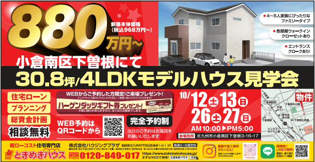 | 場所 | 下曽根モデルハウス(北九州市小倉南区下曽根3-16-17) |