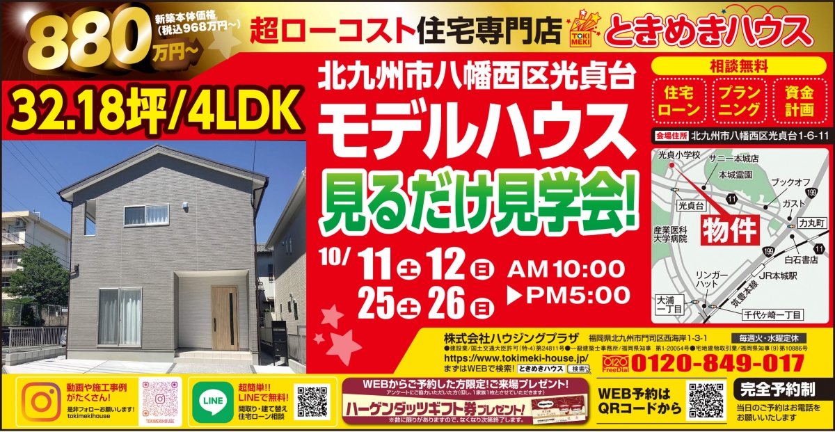 | 場所 | 光貞台モデルハウス(北九州市八幡西区光貞台1丁目6-11) ※詳細は地図をご確認ください |