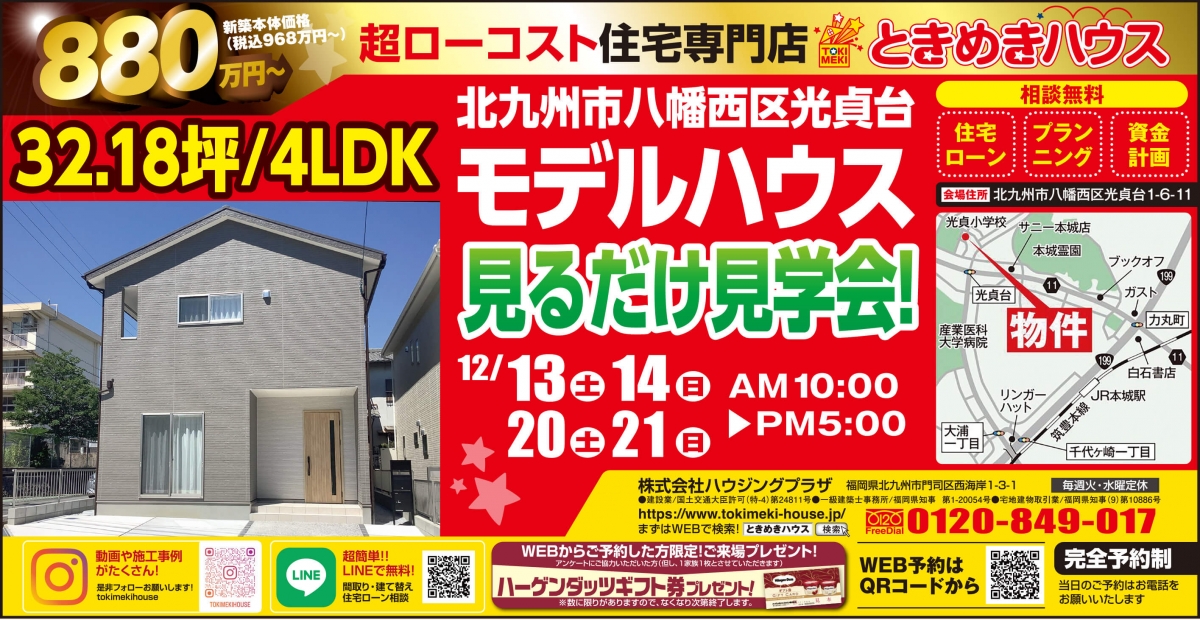 | 場所 | 光貞台モデルハウス(北九州市八幡西区光貞台1丁目6-11) ※詳細は地図をご確認ください |