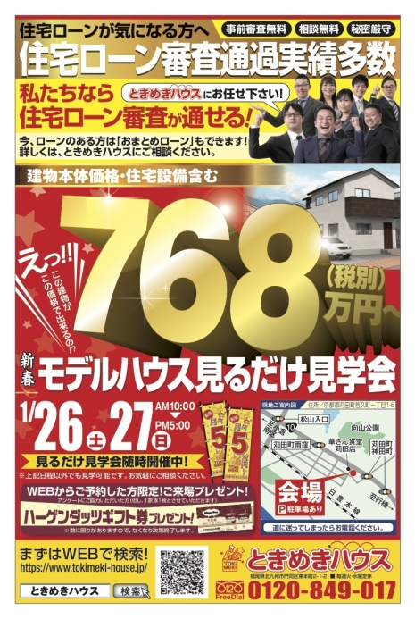 1月26日(土)27日(日)にモデルハウス見るだけ見学会を開催!