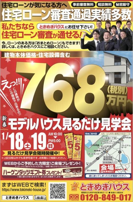 小倉南区中吉田でローコスト住宅の「モデルハウス見るだけ見学会」を開催します!
