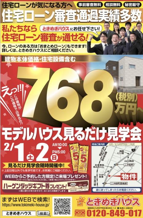 門司区二タ松町でローコスト住宅の「モデルハウス見るだけ見学会」を開催します!
