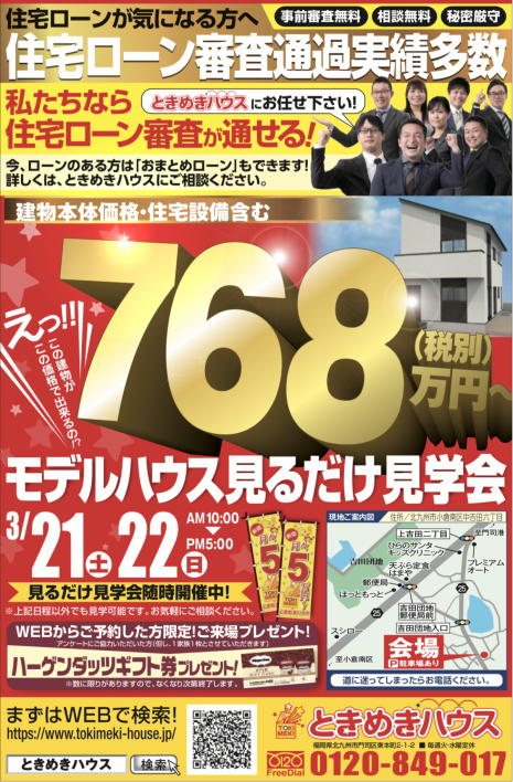 小倉南区中吉田でローコスト住宅の「モデルハウス見るだけ見学会」を開催します!