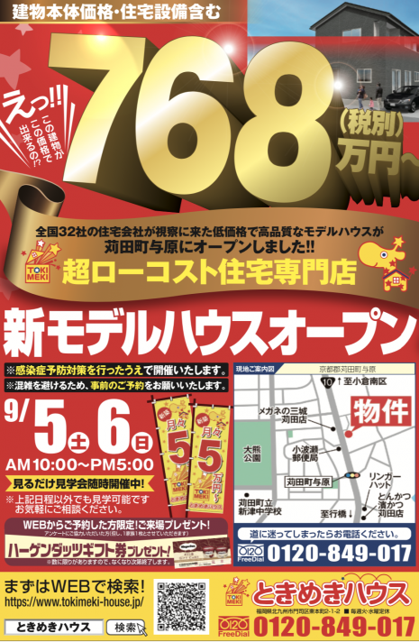 京都郡苅田町与原でローコスト住宅の「モデルハウス見るだけ見学会」を開催します!