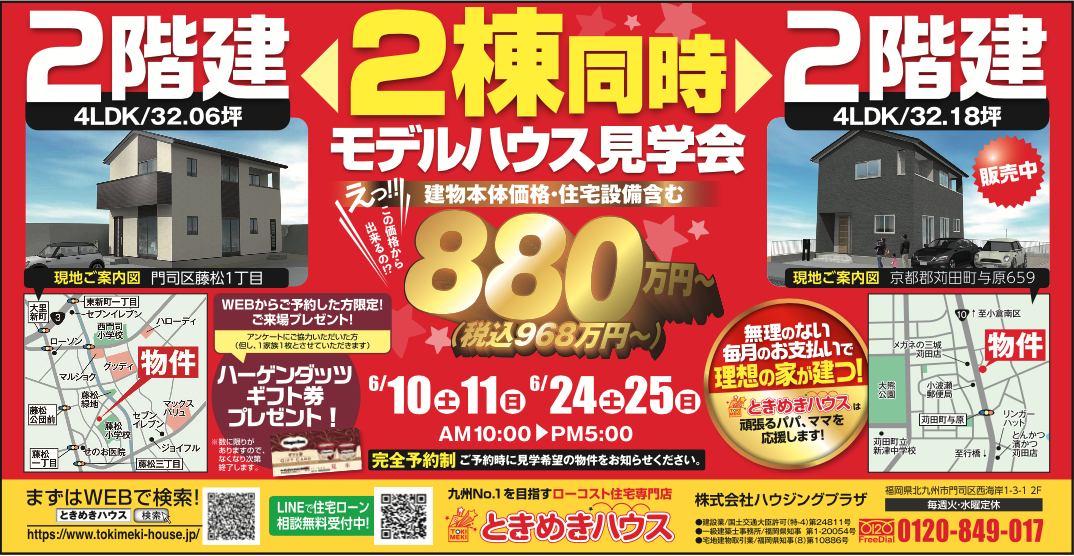| 場所 | 藤松モデルハウス(北九州市門司区藤松1丁目)/与原モデルハウス(京都郡苅田町与原659) |
