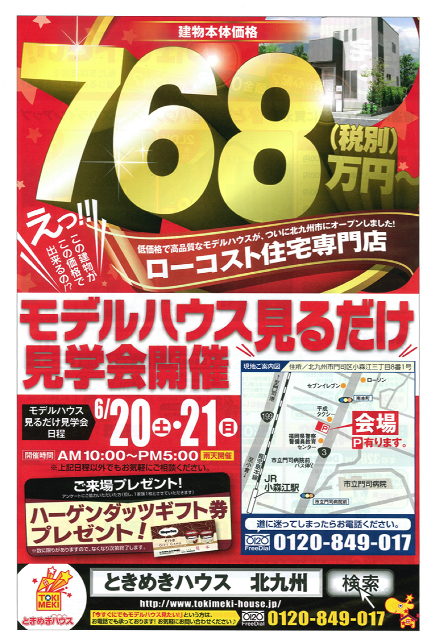 北九州市門司港小森江でローコスト住宅のモデルハウス見るだけ見学会を開催。