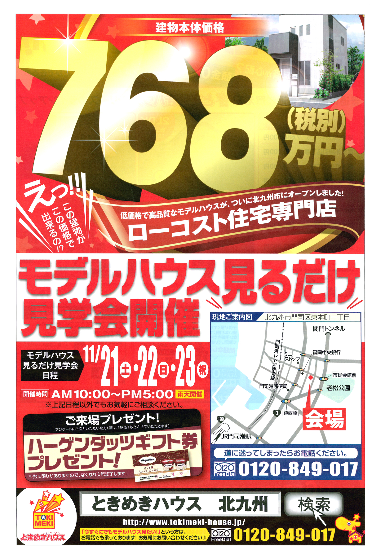 北九州市門司区東本町でローコスト住宅のモデルハウス見るだけ見学会を開催。