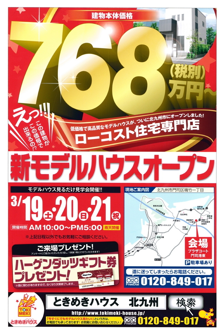 北九州市門司区鳴竹でローコスト住宅のモデルハウス見るだけ見学会を開催。
