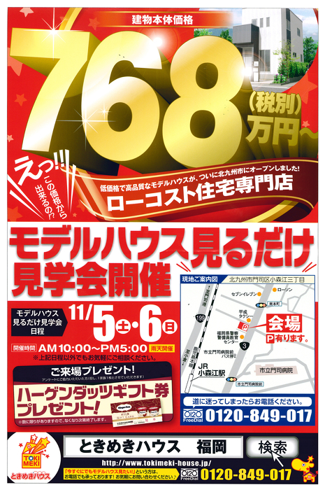 北九州市門司区小森江でローコスト住宅のモデルハウス見るだけ見学会を開催。