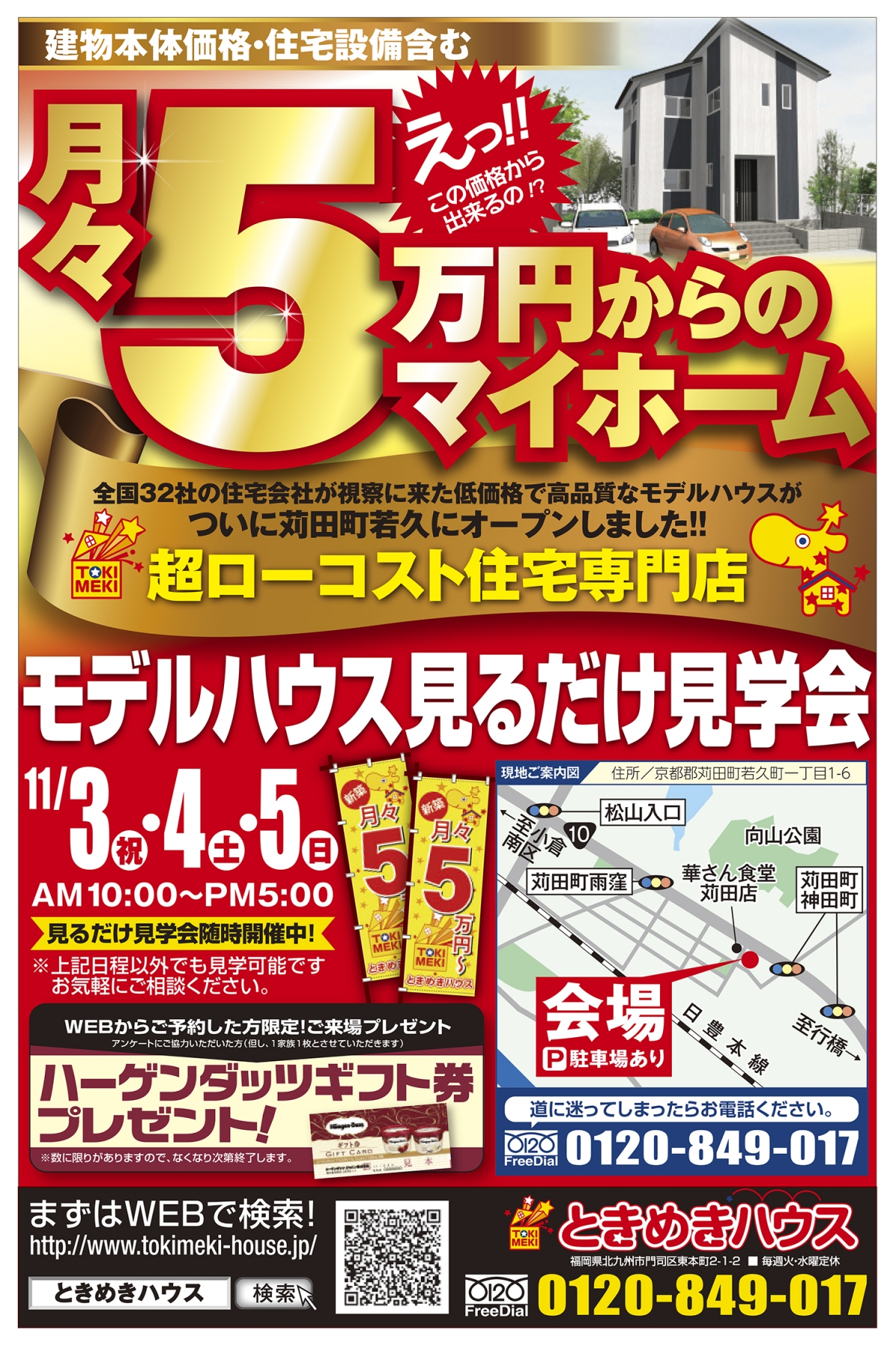 京都郡苅田町若久町でローコスト住宅のモデルハウス見るだけ見学会を開催。