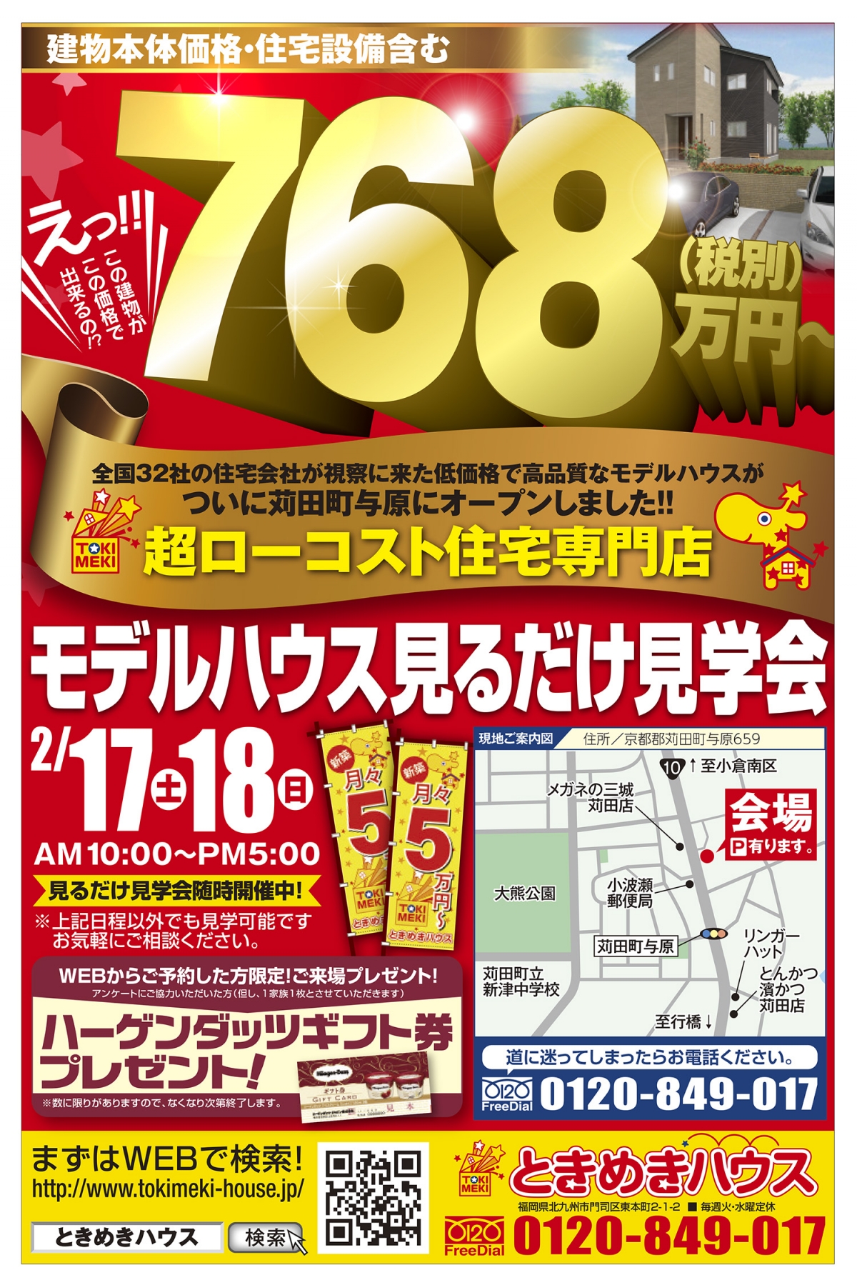 京都郡苅田町与原でローコスト住宅の「モデルハウス見るだけ見学会」を開催します!