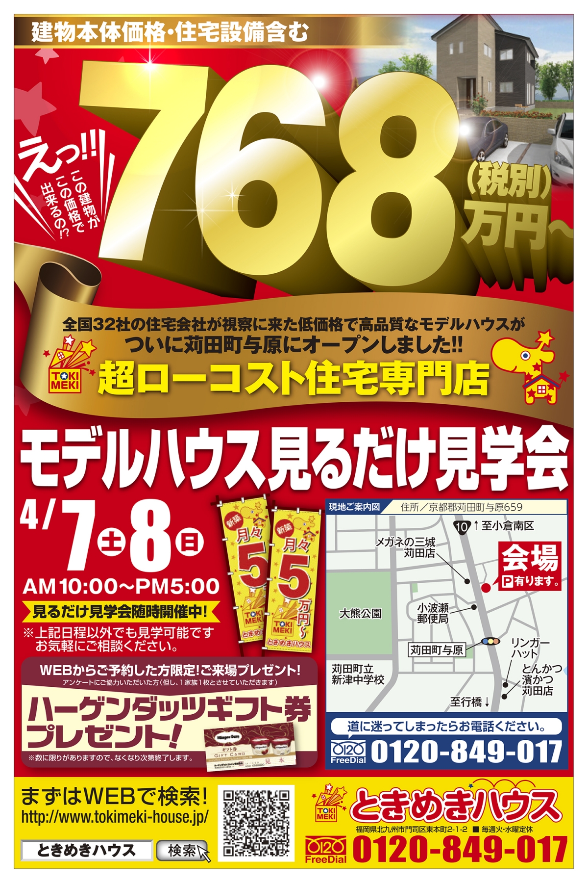 京都郡苅田町与原でローコスト住宅の「モデルハウス見るだけ見学会」を開催します!