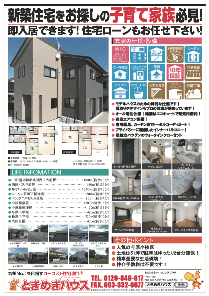 苅田町与原にあるローコスト住宅モデルハウスで内覧即売会!