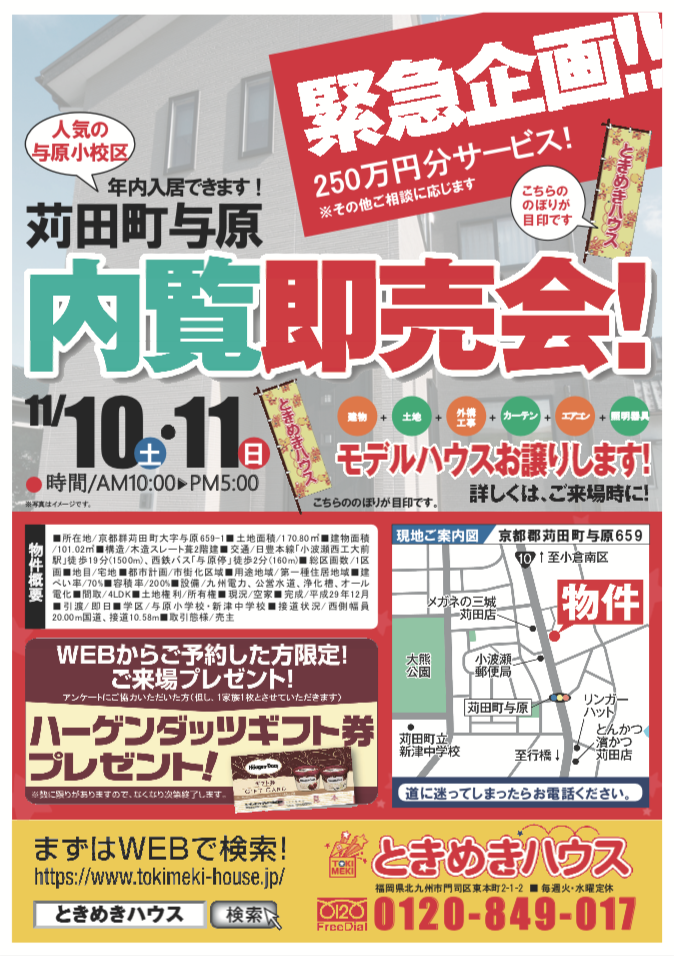 京都郡苅田町与原のモデルハウスで「内覧即売会」を開催します!