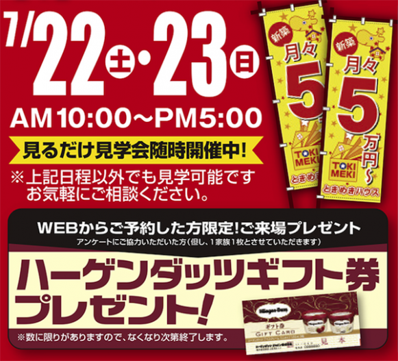 1月20日(土)21日(日)にモデルハウス見るだけ見学会を開催!