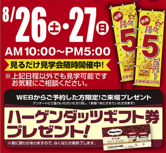 8月26日(土)27日(日)にモデルハウス見るだけ見学会を開催!